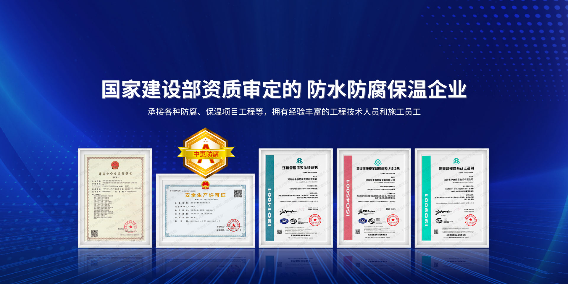 公司經營范圍:防水防腐保溫工程;消防設施工程;建筑裝修裝飾工程;建筑機電安裝工程;電力工程;建筑工程;石油化工工程;工業清洗工程;油罐清洗工程;鋼結構工程;環保工程;模板腳手架工程;電纜防火封堵、防污閃噴涂、外墻外保溫工程;各類施工勞務作業;設備維修、船舶鉚焊、涂裝;電力工程材料、建材、防水材料、防火材料、防腐保溫材料銷售,并相繼通過了GB/T19001-2008idtISO9001:2008GB/T50430-2007質量管理體系認證證書。GB/T24001-2004idtISO14001:2004環境管理體系認證證書。GB/T28001-2011idtOHSAS18001:2007職業健康安全管理體系認證證書。公司是中國防腐蝕于防護協會、中國施工企業管理協會、電力協會和中國鋼結構防水協會會員單位。 公司的經營業務涵蓋了石油、化工、電力、冶金、煤炭、船舶、國防、燃氣、水利、環保、交通運輸、航空及國防軍工和輕紡市政等行業的防腐保溫絕熱設備。鋼結構安裝、防火、防水、金屬噴鍍、聚脲噴繪、陰極保護、防滲透堵漏、玻璃鋼及各種磚版材料襯里、橡膠襯里、煙氣硫和耐酸溶劑腐蝕等工程施工。公司連續十年榮獲“省市先進施工企業”“安全生產先進單位”“重合同,守信用企業”和“AA***資質企業”的稱號。2000年被命名為市級文明單位,2002年被國家工商行政管理局命名為“重合同,守信用的企業”、被中國工業防腐蝕技術協會命名為“防腐蝕企業,能源節約及環境保護領域有豐富的經驗和***的業績。工程一次交驗合格率100%。其中攀枝花鋼鐵公司煉鐵廠四號高爐及熱風爐防腐工程、上海寶鋼公司煤氣柜防腐工程、撫順石油一廠裝置防腐項目、齊魯石化公司稀烴廠高塔防腐工程、吉林化學工業公司煉油廠油罐防腐工程、天津石化熱電廠六號爐頂棚聯絡管保溫工程、大慶油田(太倉)力神泵業工程、中國化學工程第十一建設工程、中原油田勘探局工程、中國石化銷售有限公司華北分部、魯皖輸油管道工程、貴州開磷息烽合成氨工程、陜西黃陵煤化工程、中國石油天然氣西部管道塔里木輸油工程、邯鋼集團邯寶鋼鐵公司煉鐵工程、德州供電工程、吉寶(南通)船廠工程,偃師華潤熱力工程、鄭州熱力總公司。 河南省中惠防腐安裝有限公司愿以豐富的施工經驗,***的技術,***的設備,***的管理,***的服務,竭誠為國內外廣大的用戶提供***滿意、******的工程作品。 我公司愿與國內外同仁一道,團結協作,共同推進防腐蝕行業發展! 公司地址:河南省長垣縣建設路北段360號 固定電話:0373-8866488 郵編:453400 網址:http://www_zhff_com_cn.dg-jinyinxian.com